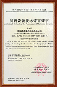 通過(guò)ISO9001:2000國(guó)際質(zhì)量體系認(rèn)證,安全生產(chǎn)標(biāo)準(zhǔn)化企業(yè)認(rèn)證,全國(guó)制藥裝備GMP技術(shù)評(píng)審