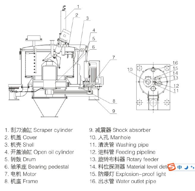 ■ 安全保護:轉(zhuǎn)速檢測,過振動保護,開蓋保護,電機過載過熱保護,刮刀旋轉(zhuǎn),升降機械電氣雙重控制,刮刀與轉(zhuǎn)鼓的聯(lián)動鎖定。
